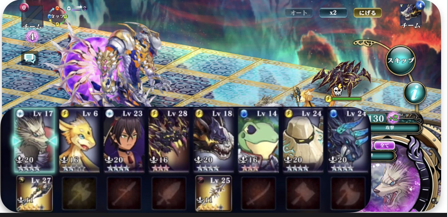 | 敵全体に400%ダメージ。敵のスピリットが0なら使用可能。 | ||