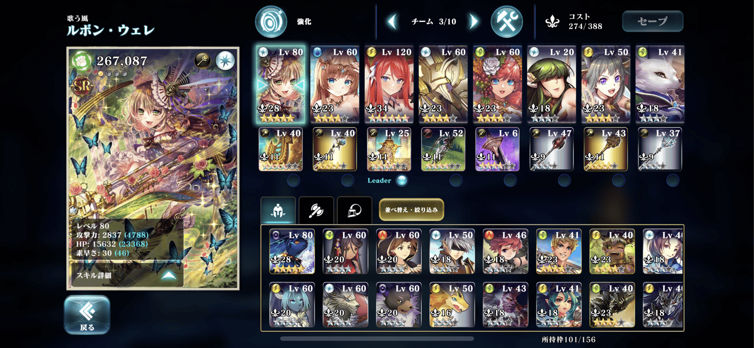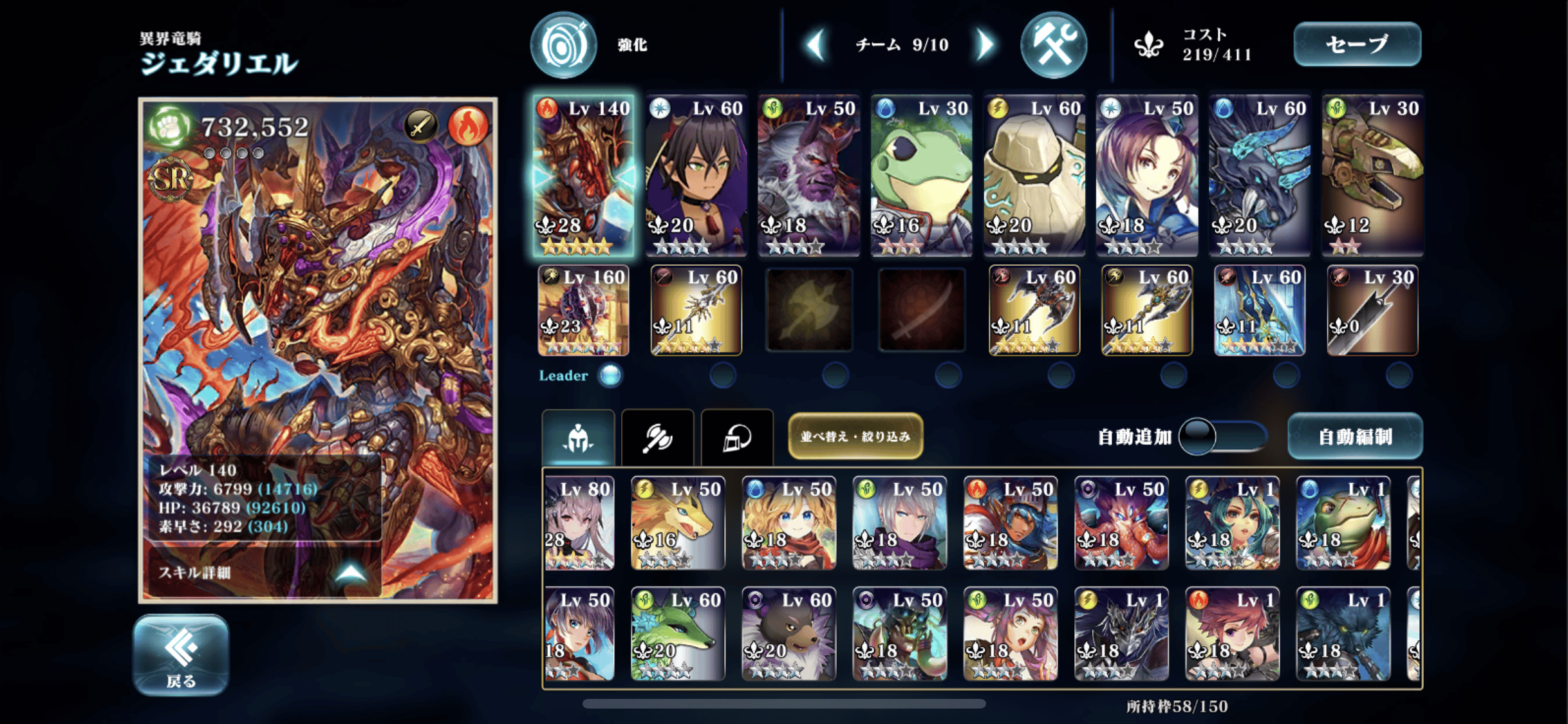 自分は初期メンバーガード&アタッカーにアーニャ(Lv80)、ゼクー(160)、回復でウルガナン、スピリットでナギを配置。