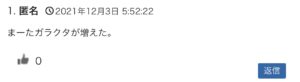 >>2 あなたですか? 今度からは失礼の無いように一字一句同じ文を書き込むようにしますね。 まーたガラクタが増えた。
