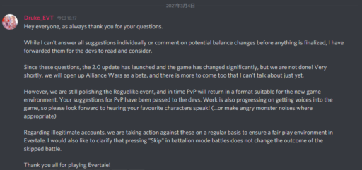 2021/03/04 海外公式アナウンス(Discord)