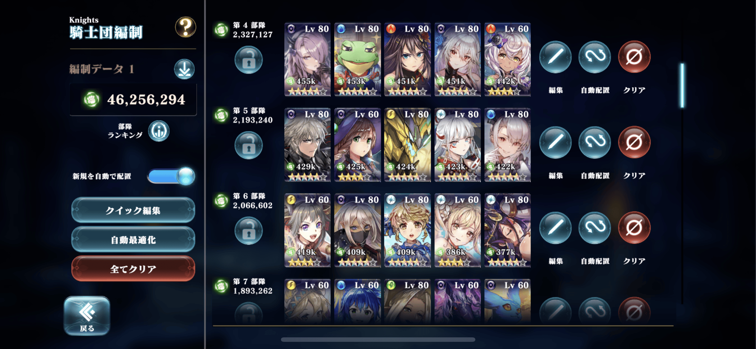 闘技場と争奪戦の兼用となっています。ランスロが育ってきたら第一をカスタマイズしていってください!ミァシアと雷ジャンヌはブロッカーと併せた時本領発揮します。