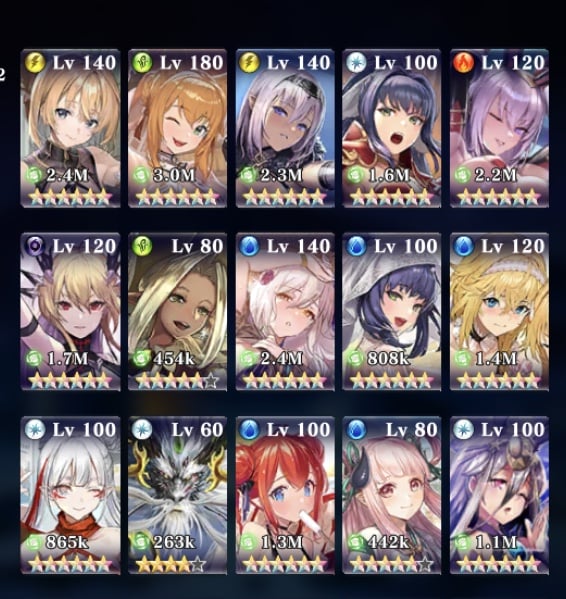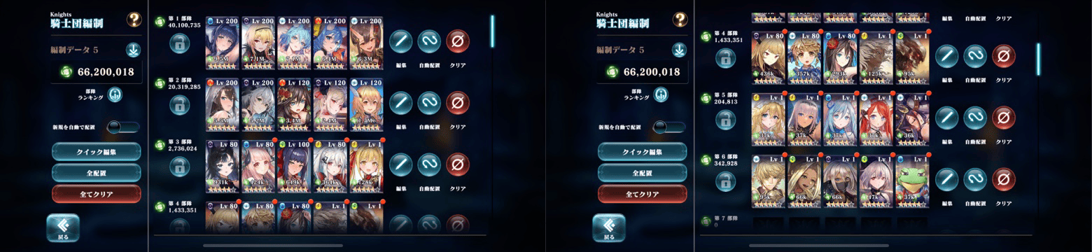 最近のジャンスロ環境で分かりにくくはありますが、まず第一に無凸〜微凸SSR複数体より、完凸育成アタッカー1体いる方が強いです。とりあえず母体確保したようなキャラが多いのはもったいないと感じます。