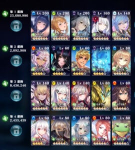 嫁リュド(完凸)ミァシア(完凸)闇ジャンヌ(凸2)残りは無凸です。