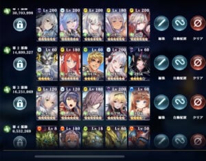 争奪戦用の睡眠部隊で悩んでます。 完凸はクラリス、水カレン、バニリゼ、土ウラハ、土レイ、光ミライ。 ウラハ200、レイ180、他は160です。 いい編成ないでしょうか?