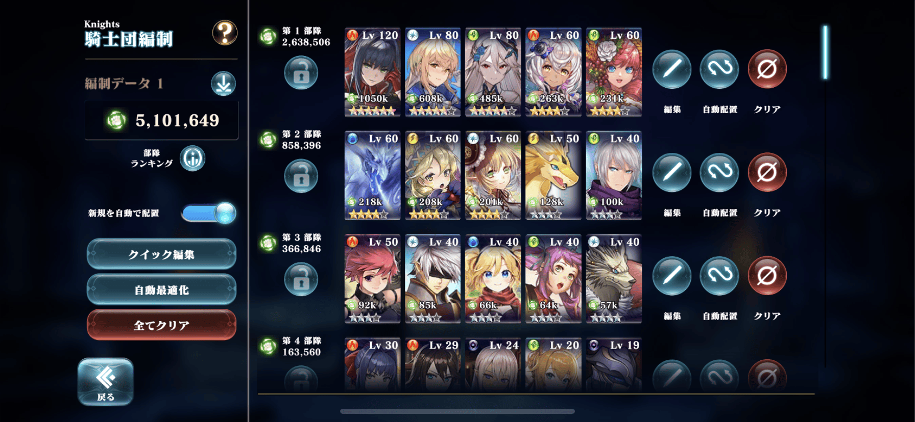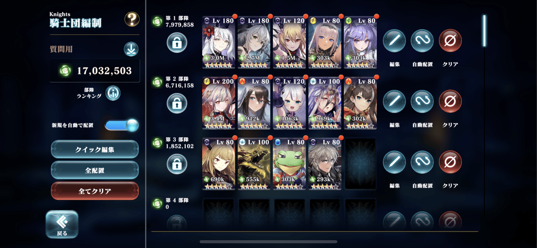 今の手持ちがこんな感じなのですが、どれを育成して、編成していくといいか分かりません…… アーニャ、白雪姫、闇ジャンヌ、雷エルミナ、輪廻リゼでいいのでしょうか……? 無課金なので……よろしくお願いします。