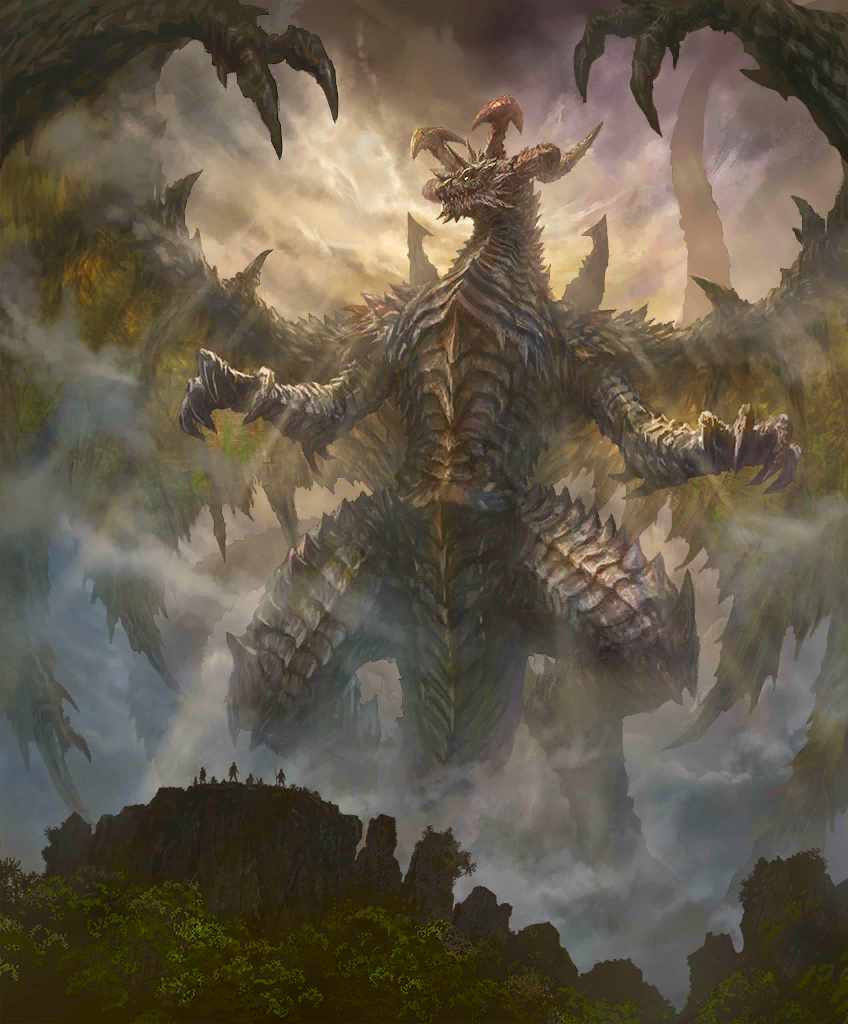 | 其の神、深き闇の淵より顕れ、紫の焔を司る。其の体躯連峰の如き、其の両翼雲を覆いて夜を造る。最後の日に姿を現す者。然し彼の者が齎すは救世の光に非ず、破壊と終焉の闇也。――忘れ去られた古文書より。 |