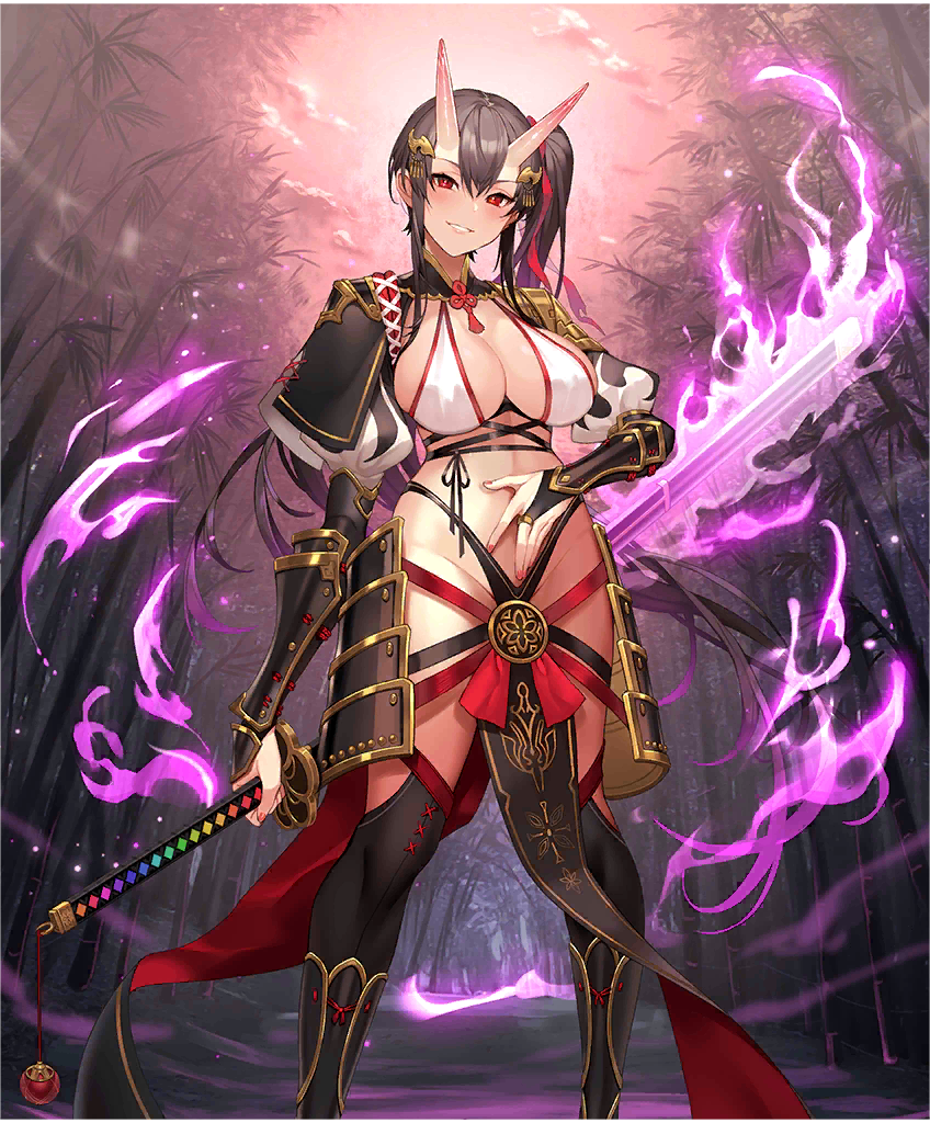 女神に願わず。巫女として舞わず。しかして戦を前にすれば、誰より早く鯉口の音を響かせる。姿形同じ者在ろうとも、鬼の首魁狙う紅鬼は彼女おいて他になし。