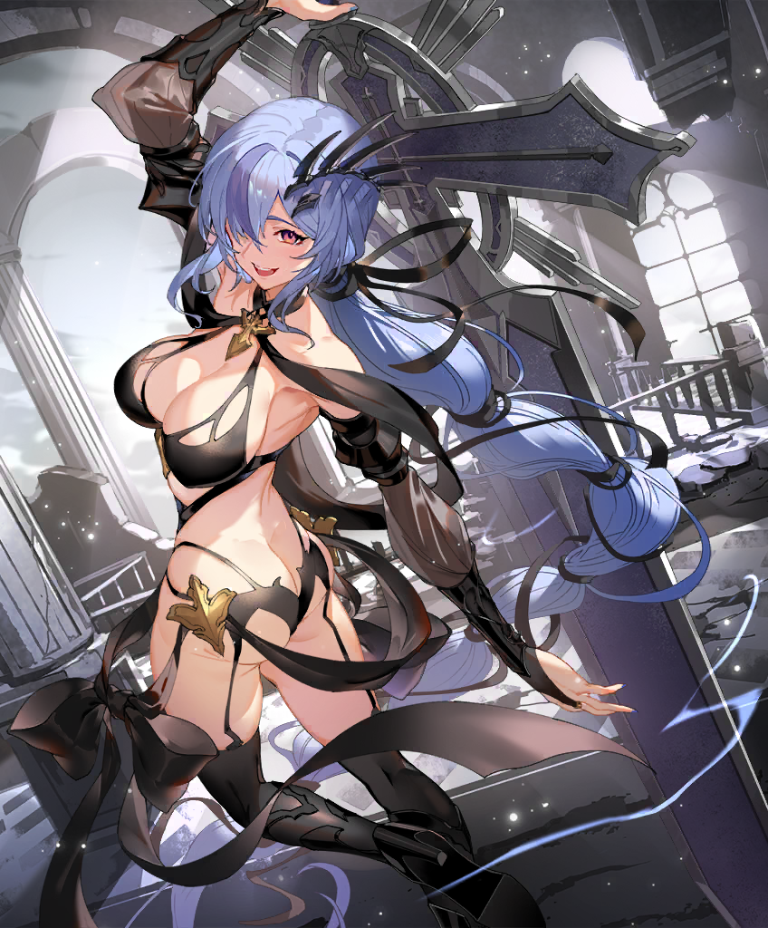 TU100、スピリット-2で敵一体にアーマー無視の500%ダメージ。敵を1体以上倒している場合に使用可能。このスキルが使用可能な場合、アンガーが付与されていなければ「剛斬・日輪」よりもこのスキルを優先的に使用する。