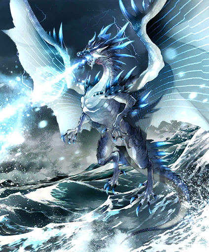 | カウ・ラナはトゥアハ語で「風と波から生まれた者」を表す。このドラゴンがなぜそう名付けられたかは一目瞭然だ。空でも海でも俊敏なカウ・ラナは、古代トゥアハの島民を恐怖に陥れた。海は重要な食料源だったが、島民は滅多に海へ漕ぎ出すことができなかった。 だがトゥアハの民が皆ドラゴンに恐れをなしていたわけではない。伝説によると、カレイハという名の族長がトゥアハ山に登り、そこで最大のカウ・ラナと戦い、最後には従わせることに成功したという。それ以来2つの種族は平和に暮らしており、共に島を守り育んでいる。 |
