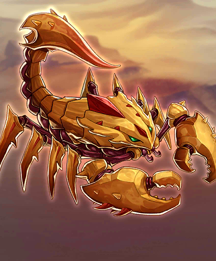 | コハクピオンは、屈強なラケルタ族が唯一恐れる砂漠の生物である。そのハサミは一振りで岩を砕き、人間などひとたまりもない。 |