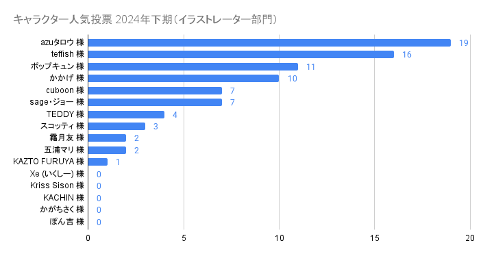 • 対象:女性部門(113キャラ)、男性部門(23キャラ)、人外部門(30キャラ)、イラストレーター部門(17名)