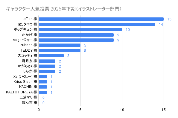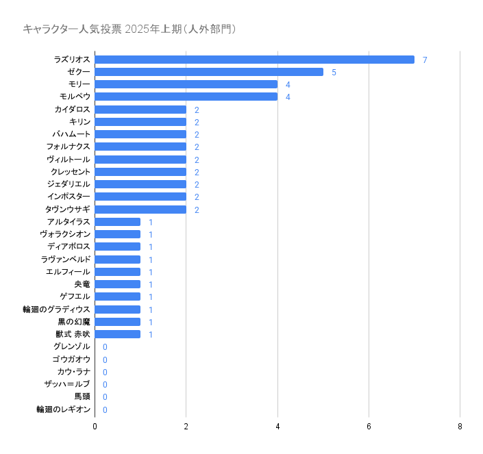 1位のトリスタンは最終的に18票入ってますが、添付画像では15票になっているので何らかの事情で古いデータが表示されているようです。