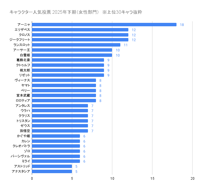 女性部門(127キャラ)