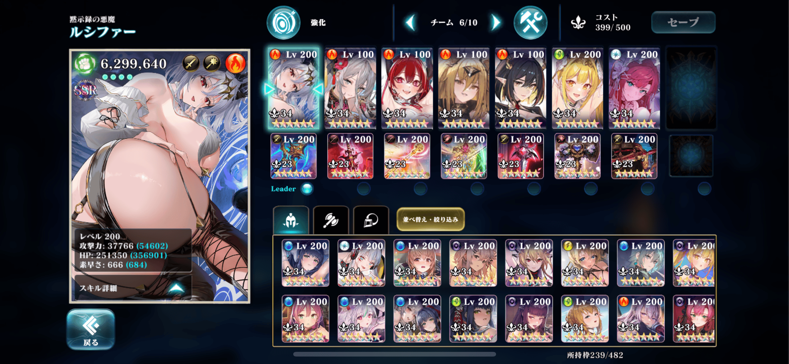 借りた傭兵ルシファーは勿論Lv200です、解放率89%でしたブーストは忘れた…戦力は740万は超えてたかな〜