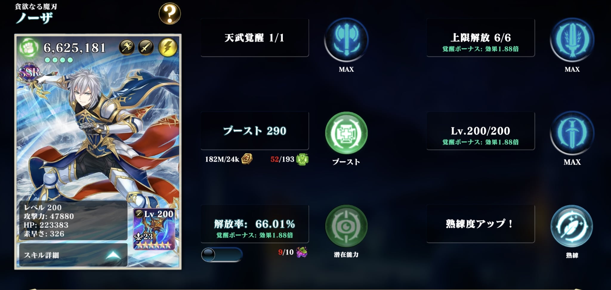 光ミライと相性良く、Wタイムブレイカーが結構闇ジャンヌと光ミライ狙ってくれるのでちゃんと鍛えてれば相討ちに近い形にはしてくれるので、少なくともノーザよりは使い所あるんですが。